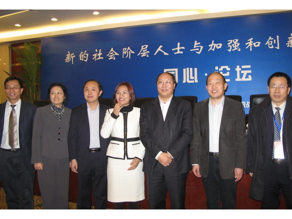 会议分别由中国注册税务师协会会长许善达和中国注册会计师协会副会长兼秘书长陈毓圭主持。先后有16名新的社会阶层人士从评估、法律、现代企业管理、税务、会计等不同角度就社会管理创新作了发言。中央统战部六局局长王永庆(右3),副局长张明(左3),联络二处处长王娅妹、干部袁争等领导,中国房地产估价师与房地产经纪人学会副会长兼秘书长柴强(右2)、副会长廖俊平及中国外商投资协会、中国专利代理人协会等单位有关领导参加了论坛。王永庆局长说明了本次论坛的背景,充分肯定了大家的发言,并希望新的社会阶层人士采取客观科学的自我定位,采取包容的心态和多元化的态度,做合格的社会管理创新参与者,为社会管理创新作出应有的贡献。