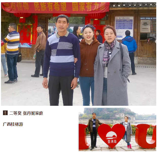 本次感恩旅游大奖共设奖项三类,共8名:一等奖1名,家庭海外游;二等奖2名,父母国内游;三等奖5名,父母省内游。