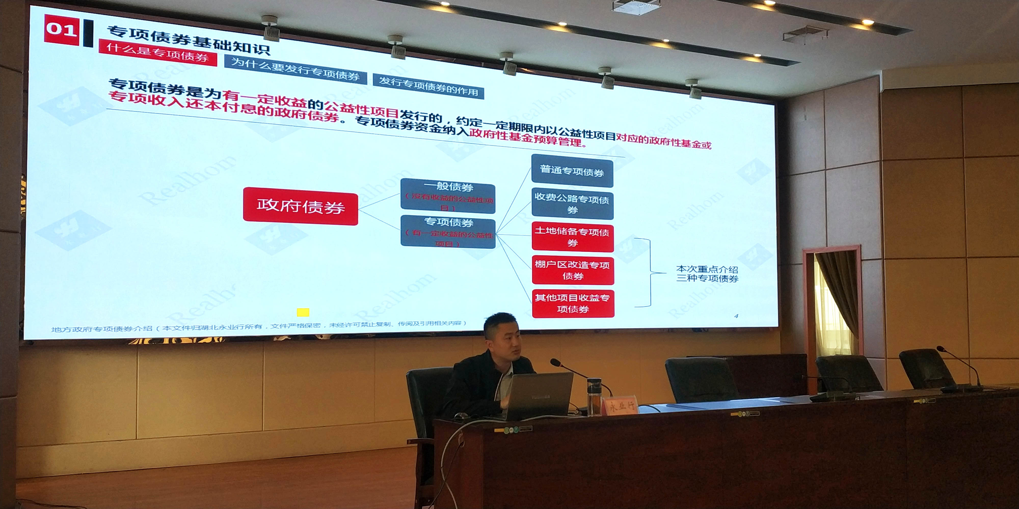 2019年5月8日,茅箭区财政局组织召开“茅箭区新增政府债券项目申报培训会”。永业行地产顾问事业部运营总监张丹、执行总经理李斯、房地产事业部副总经理王涛作为服务机构代表参加会议,并作专题培训。
