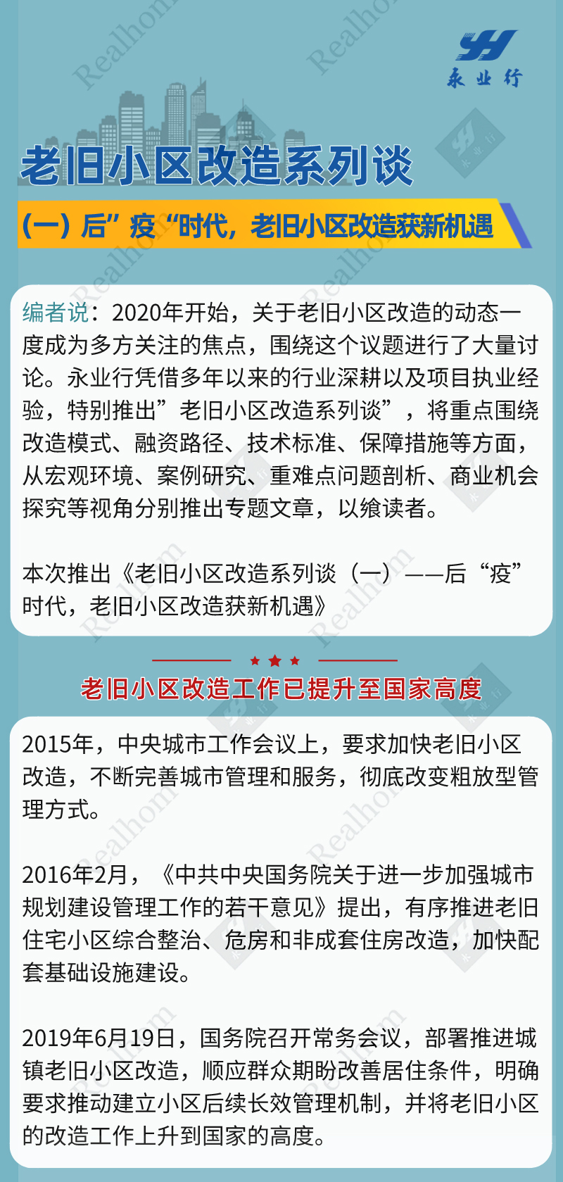 【永业行观察】老旧小区改造系列谈(一)——后”疫“时代,老旧小区改造获新机遇