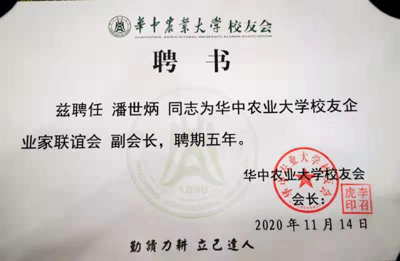 永业行潘世炳再次当选华中农大校友企业家联谊会副会长