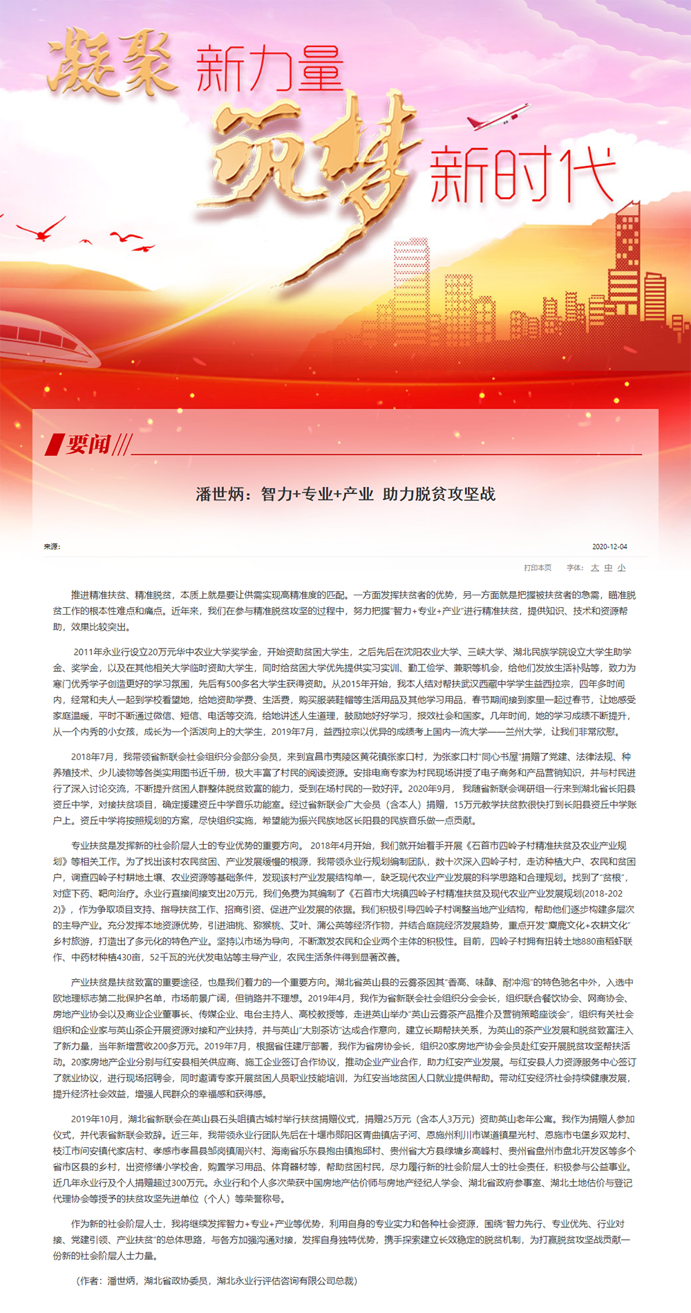 中央统战部网站:潘世炳:智力+专业+产业 助力脱贫攻坚战
