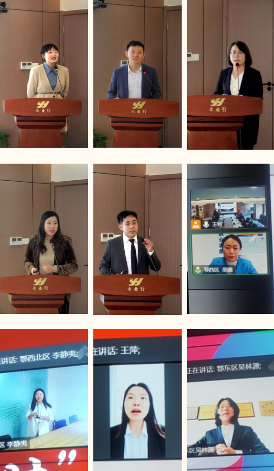 2022年10月10日,永业行“喜迎二十大,奋斗正当时”演讲比赛在总部会议室隆重举行。经过预赛选拔,9名来自总、分部的参赛选手同台竞技。永业行党委书记、董事长潘世炳,常务副总裁吴学锋,副总裁程为民,总部各职能部门负责人、分部优秀员工代表通过线上线下形式出席并担任评委。本次演讲比赛还特别邀请了党建指导员郭群到达现场观摩并指导工作。