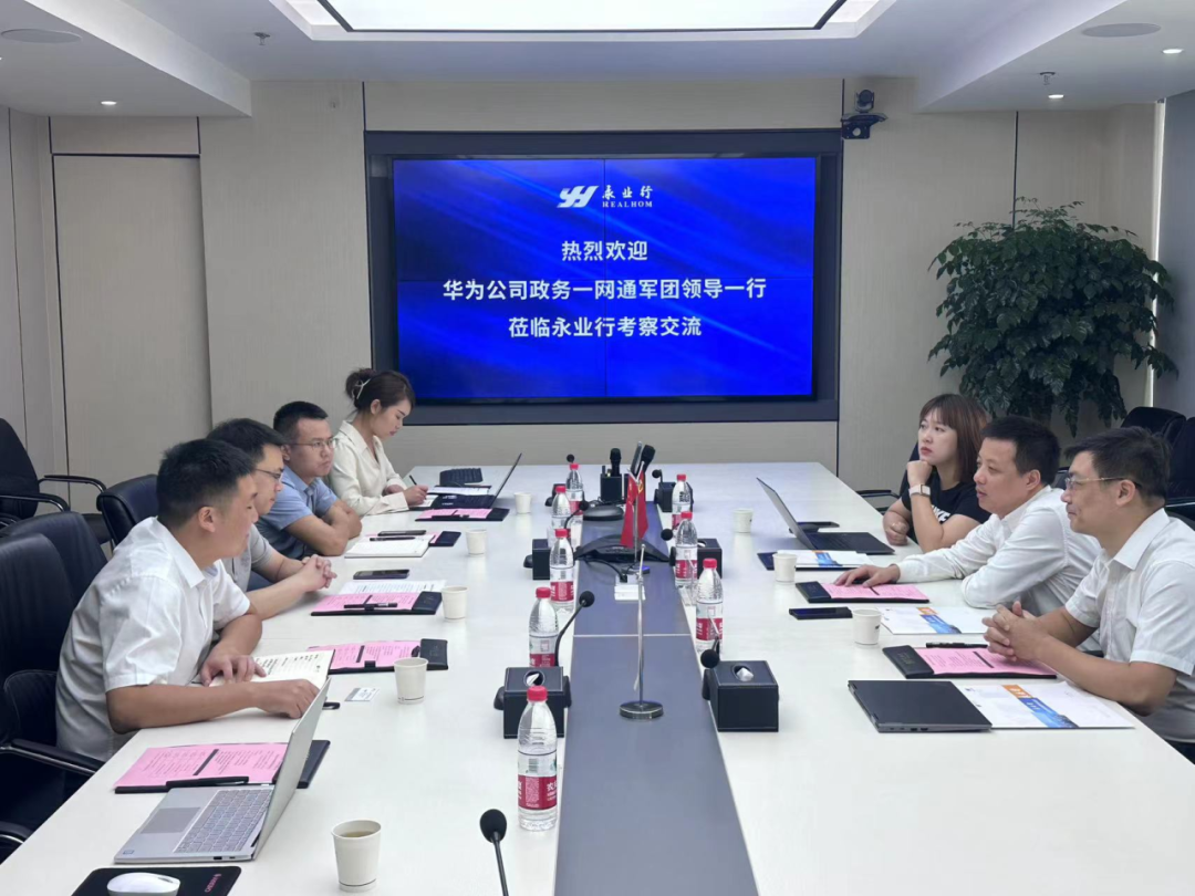2023年9月7日,华为公司政务一网通军团副总裁刘勇一行赴永业行交流座谈。永业⾏⾼级副总裁、投资⾦融产业链执⾏董事兼董事总经理文云波热情接待,双方开展了充分的业务交流。