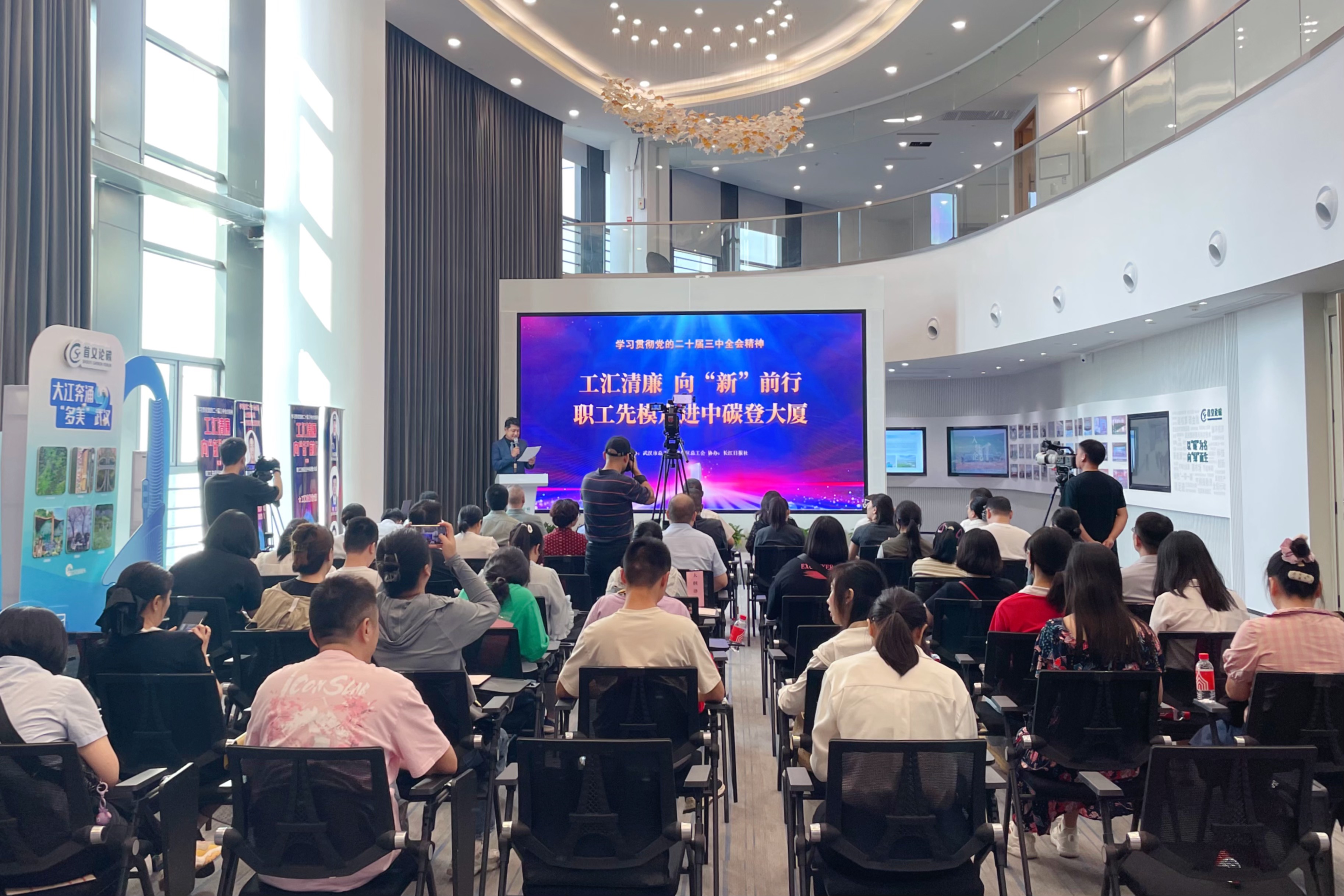 2024年9月27日,由武汉市总工会、武昌区总工会联合主办,长江日报社承办的“工汇清廉 向‘新’前行”第二场主题活动在中碳登大厦举行。武汉市总工会党组成员、经审会主任马欢,武汉市总工会宣传教育部副部长贺鹏,武昌区总工会党组书记、常务副主席钟桃云出席会议。永业行党委委员、高级副总裁文云波参加会议,并作《学习贯彻党的二十届三中全会精神 全力赋能绿色转型——永业行实现高质量发展新局面》主题宣讲。