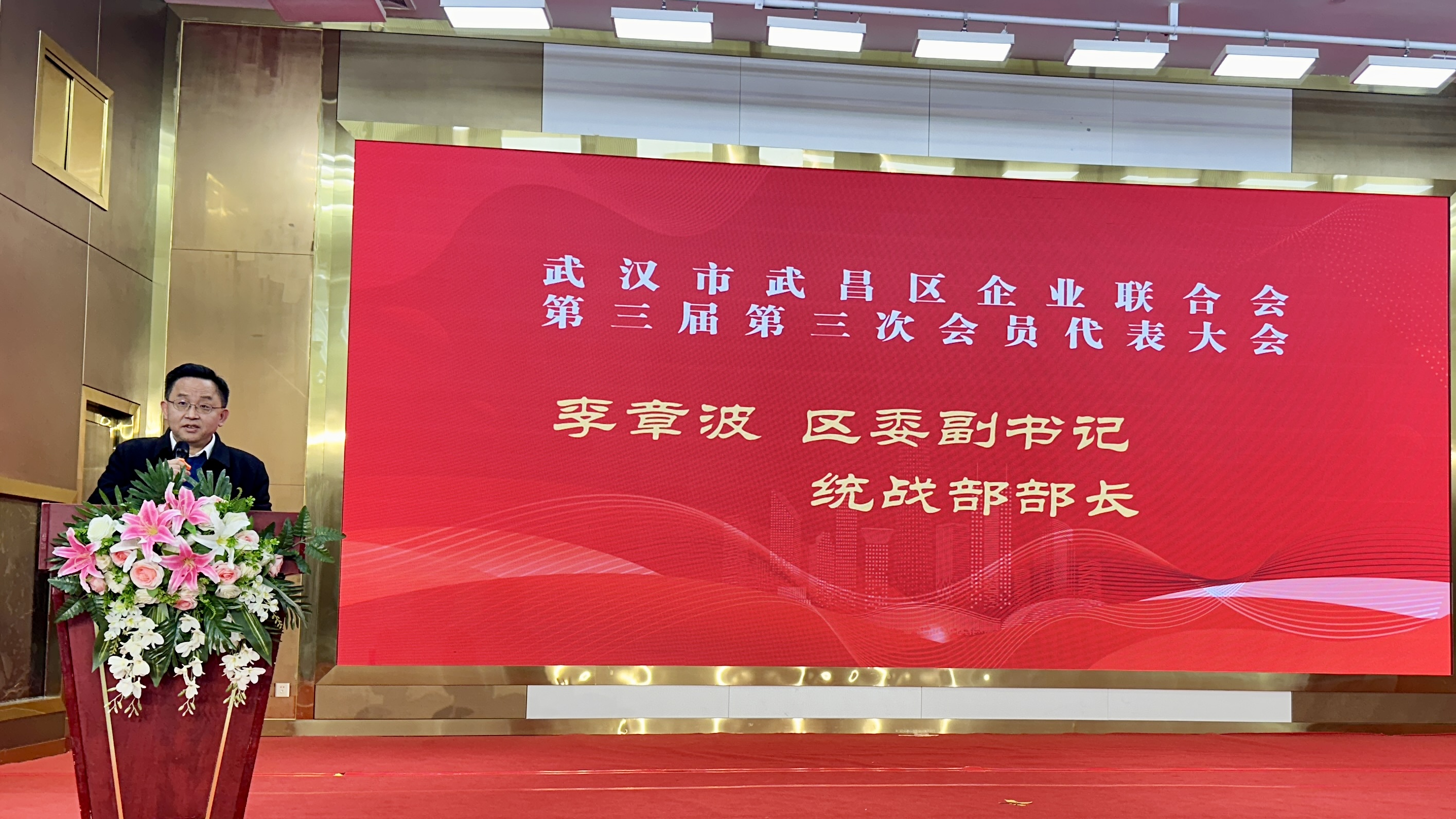 2024年12月30日,武昌区企业联合会(以下简称“武昌企联”)三届三次会员代表大会暨2025年春节团拜会在汉召开。武昌区委副书记、统战部部长李章波,武汉企联会会长高义琼出席会议并讲话,武昌区政协副主席陈烈,武昌区政府副区长、工商联主席钱刚,武昌区政协原主席刘君,硚口区委原常委蔡海雄,硚口区人大常委会原副主任胡亚非,武昌区委统战部副部长陆峰,区委统战部副部长、区工商联党组书记吕志新,武汉企协会长王建东到会指导。会议对武昌企联2024年工作中有突出贡献的会员企业、企业家和优秀协会工作者进行表彰,永业行获评武昌区企业联合会“优秀会员单位”。
