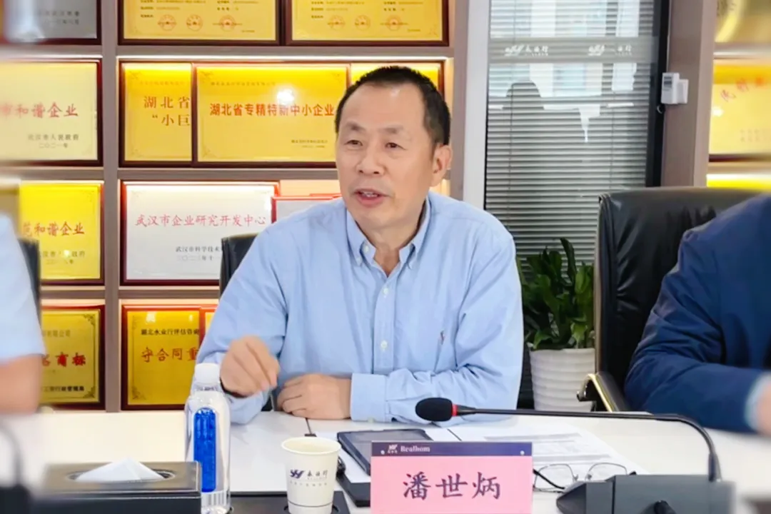 潘世炳对徐涛一行莅临永业行表示热烈欢迎,感谢武昌区委、区政府多年来对永业行发展的关心和支持,介绍了永业行战略规划、创新研发、业务开展等方面所做工作。他表示,永业行将充分发挥专业优势,加强与武昌区委、区政府的沟通交流,依法依规地推动企业改革发展,为武昌区经济社会高质量发展作出新的更大贡献。