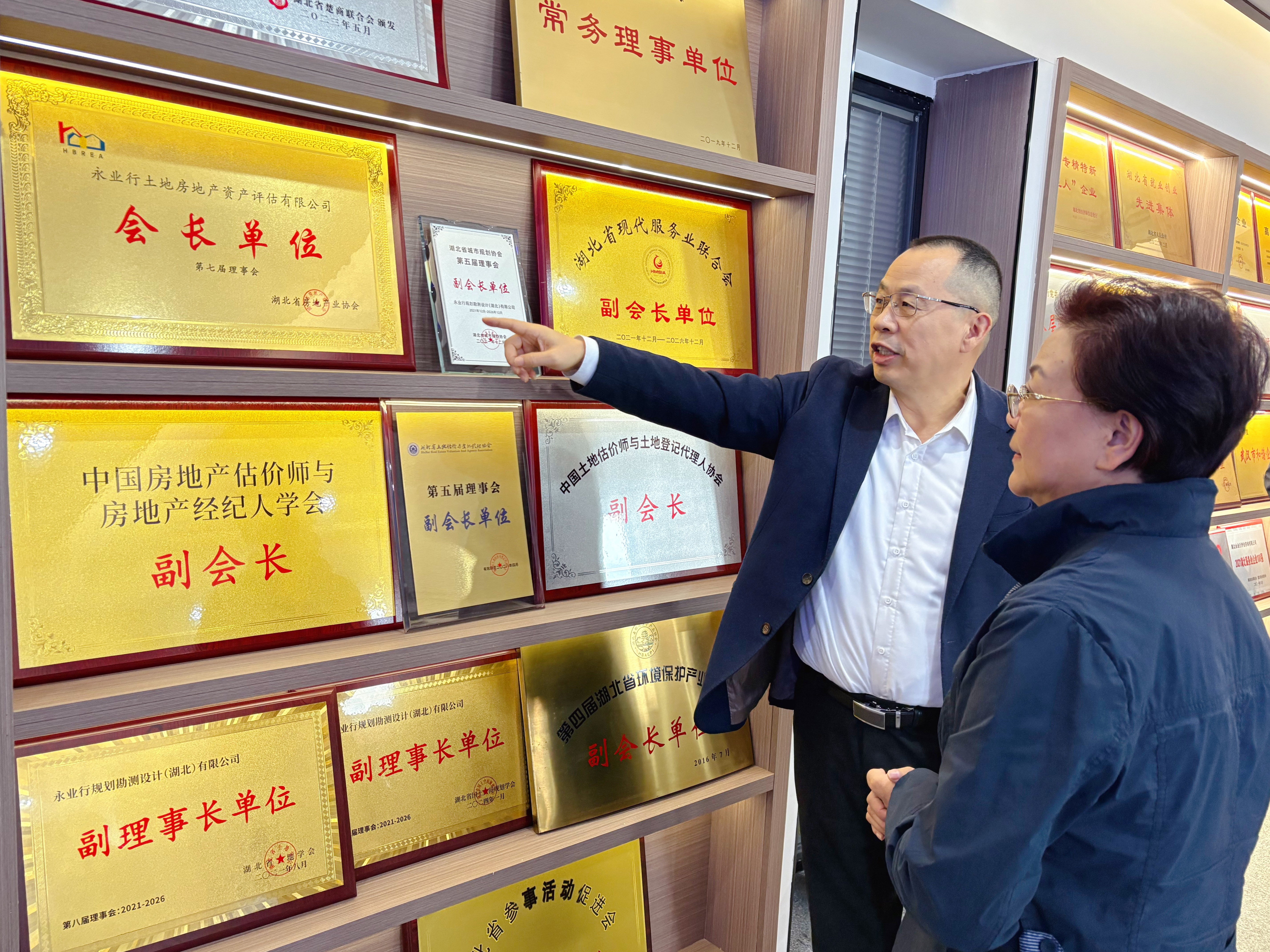 潘世炳对黄惠宁一行莅临永业行表示热烈欢迎,感谢农工党湖北省委会对永业行的关心和关注,并从党建引领、发展历程、业务布局、社会责任、基层组织建设等方面介绍了永业行的相关情况,以及永业行发挥专业优势在服务资源环境、绿色生态、经济社会高质量发展等方面所做工作。他表示,永业行将始终坚持党建引领、参政议政、企业经营“三结合”,秉持“生态优先、绿色发展”理念,持续在资源环境、双碳、绿色金融等领域发挥作用,期望与农工党湖北省委会深化交流合作,凝聚发展共识。